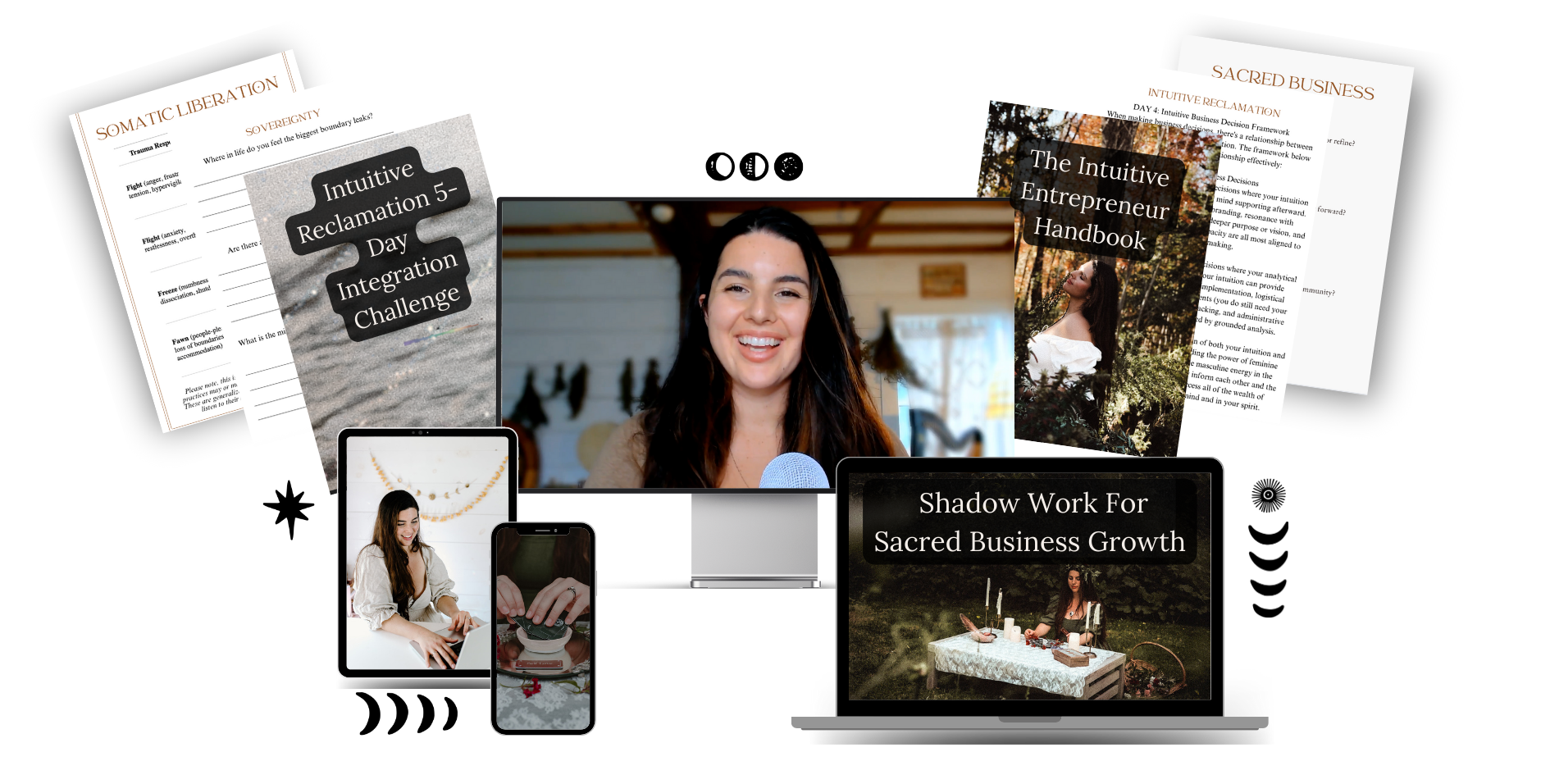 This bundle covers everything from how to heal your fear of being seen... to activating abundance on an energetic level... to building automated systems that work while you sleep... to aligning your marketing with lunar cycles for effortless, natural business growth... and so much more, so you can share your magic with the world in a sustainable and sumptuous way.